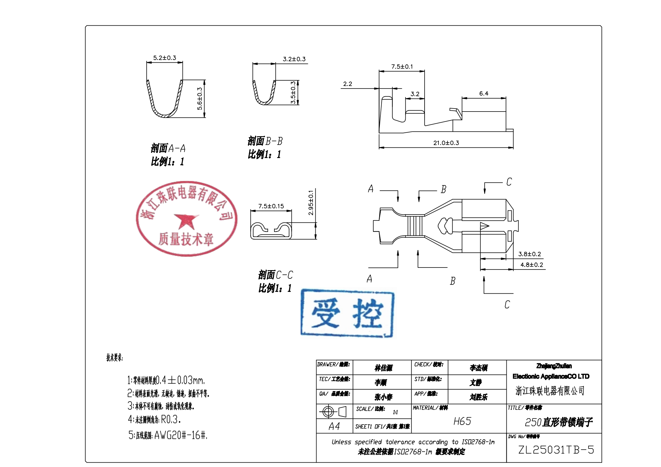250直形带锁端子 ZL25031T-5